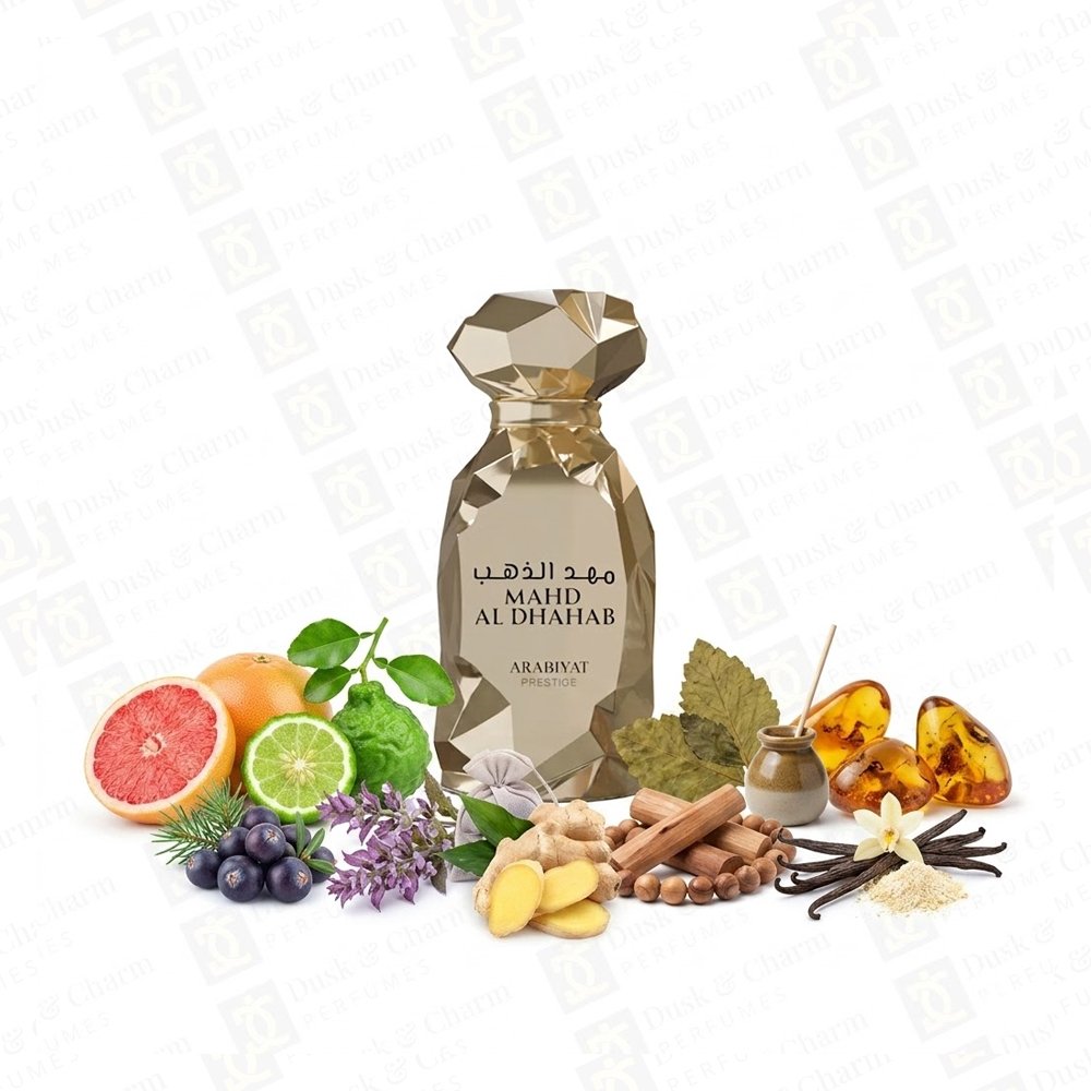 Arabiyat Prestige Mahd Al Dhahab is a bold and sophisticated fragrance that blends freshness with warm elegance. It opens with a vibrant mix of grapefruit, bergamot, red fruits, and juniper berry for a crisp and fruity start. The heart unfolds with aromatic clary sage, cypress, and a touch of spicy ginger, adding depth and character. The base settles into a rich and long-lasting blend of sandalwood, patchouli, vanilla, and amber, making it perfect for both day and evening wear.