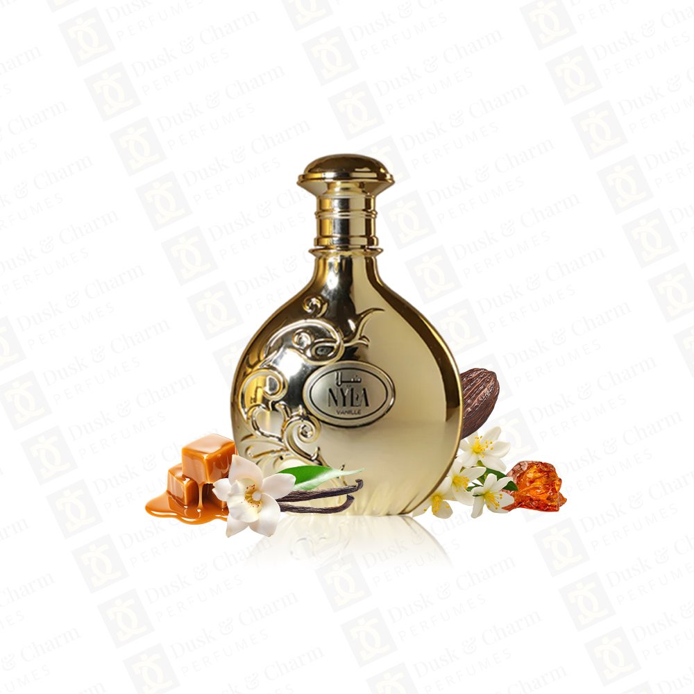 Arabiyat Prestige Nyla Vani-Elle is a deliciously smooth and comforting fragrance that celebrates the richness of vanilla. It opens with creamy vanilla bean blended with soft jasmine, unfolding into a warm heart of caramel and amber. The scent finishes with an irresistible base of vanilla, tonka beans, and musk, leaving a sensual and long-lasting trail. Perfect for lovers of sweet, elegant, and cozy gourmand fragrances.