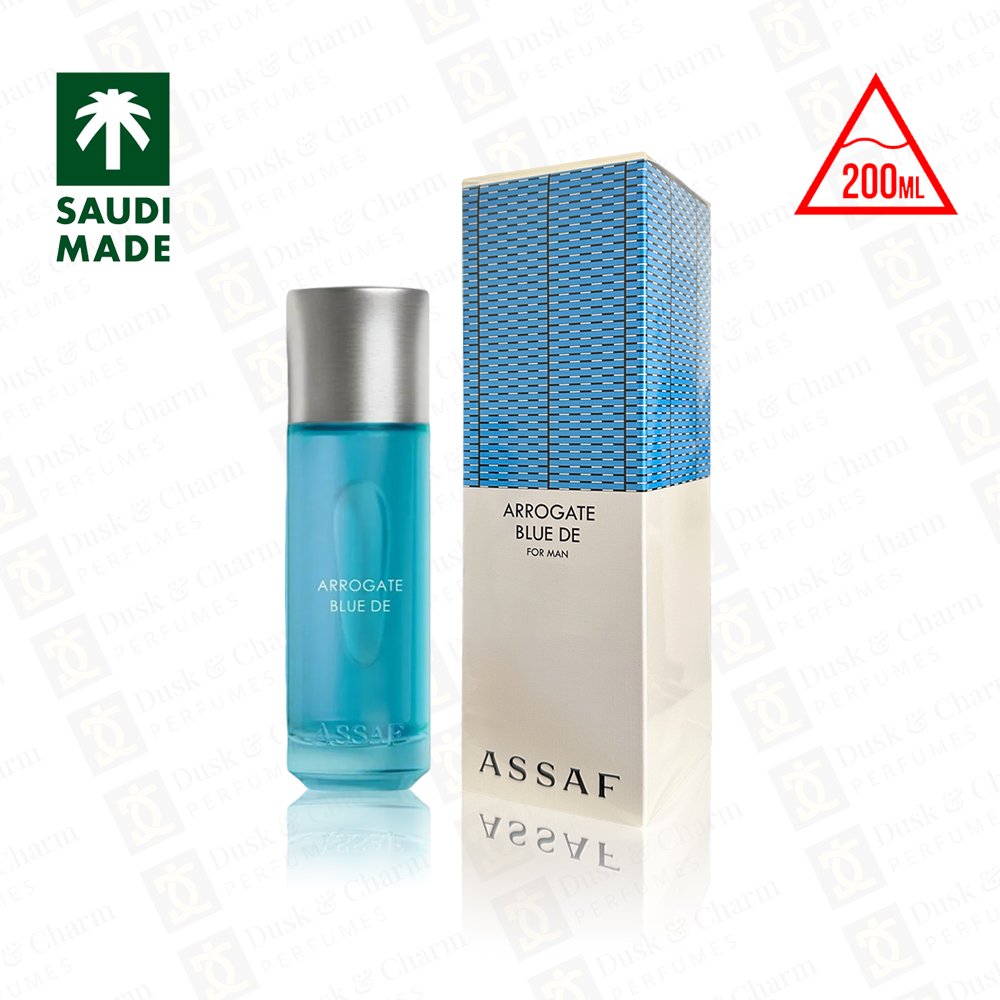 Arrogate Blue De for Man by Assaf is a powerful and modern fragrance that opens with a fresh burst of grapefruit, lemon, and pink pepper, creating a crisp and energetic introduction. The heart blends patchouli, cedarwood, and geranium, adding a perfect balance of woody depth and aromatic freshness. It settles into a bold base of labdanum, incense, and vetiver, leaving a smoky, long-lasting trail that feels masculine and confident.