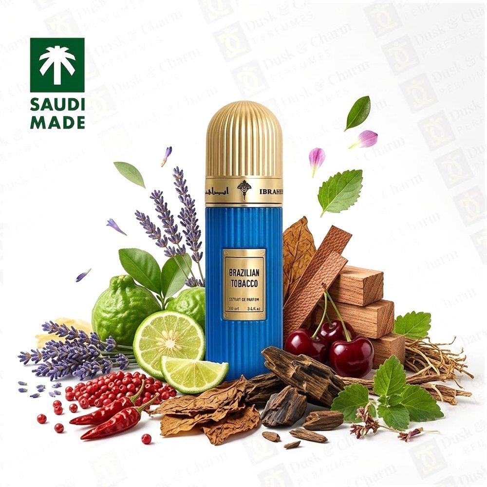 Brazilian Tobacco by Ibrahim Al Qurashi is a daring and sophisticated fragrance that blends the raw energy of the tropics with the timeless elegance of oriental perfumery. It opens with a fresh yet spicy burst of Bergamot, Lavender, Pink Peppercorn, and Chili β an electrifying introduction that immediately grabs attention.