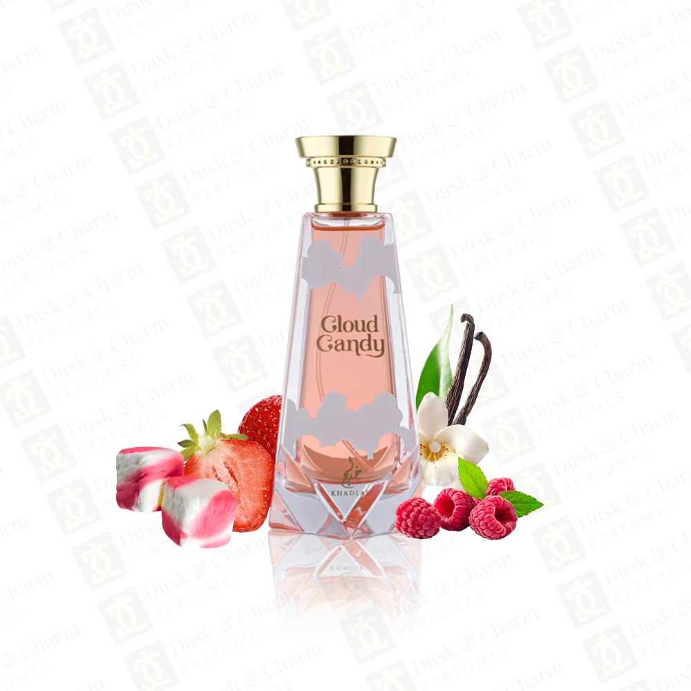 Cloud Candy by Khadlaj – a delightful 100 ml perfume that feels as sweet and dreamy as its name. It opens with a juicy burst of strawberry, green tangerine, and freesia, followed by a heart of fluffy marshmallow, coconut, and whipped cream. The base of white musk, vanilla, sugar, raspberry, and ambroxan adds a soft, irresistible sweetness that lingers beautifully. Perfect for those who love playful, gourmand fragrances.