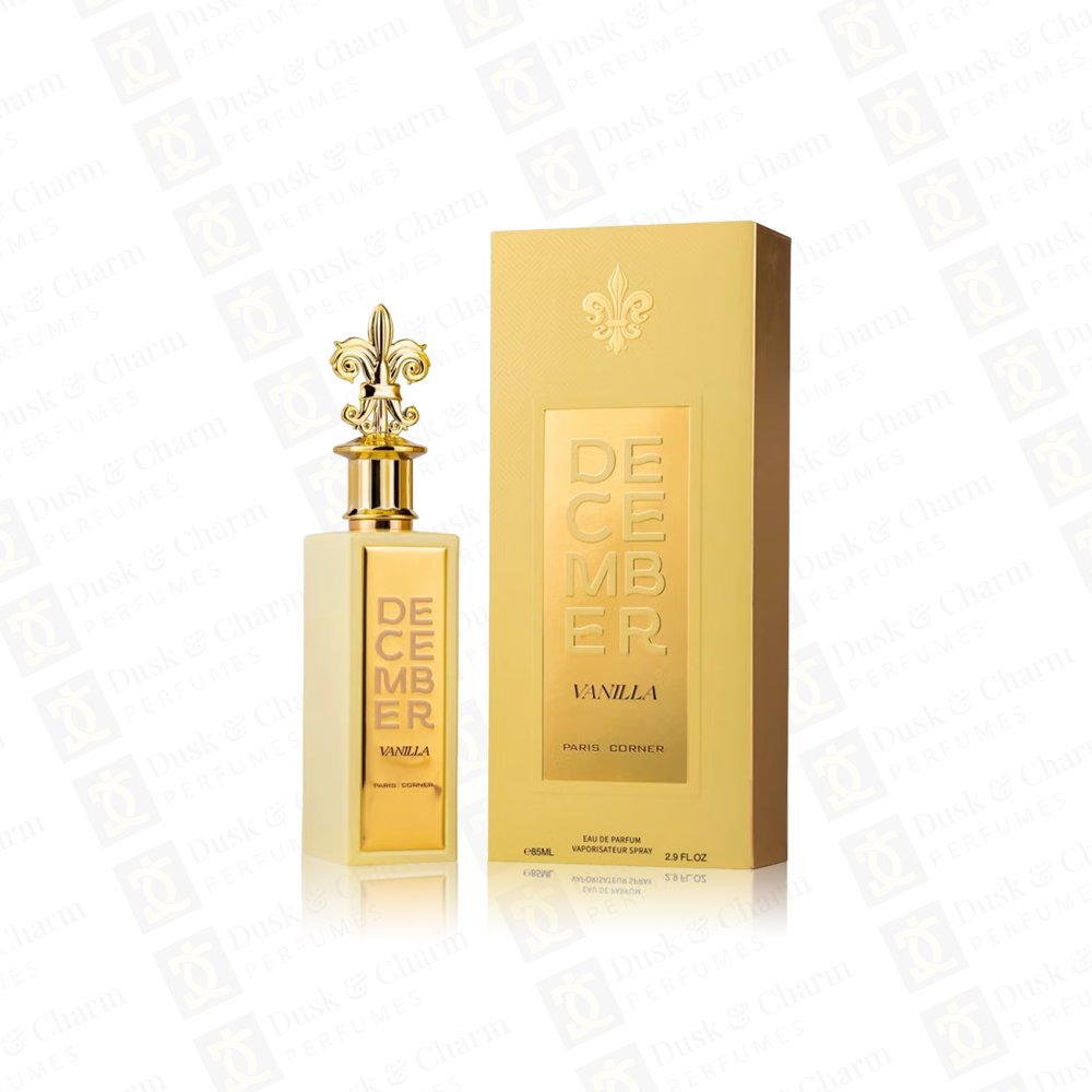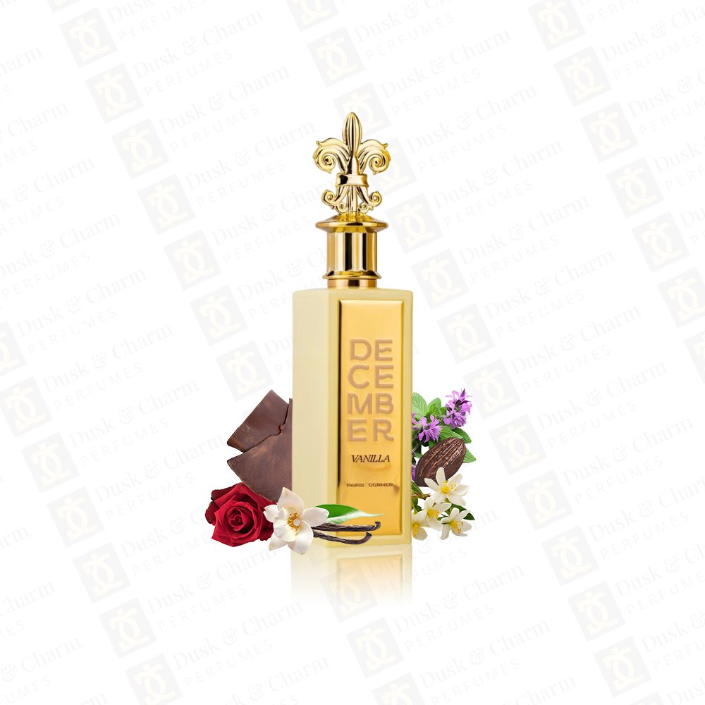 December Vanilla by Paris Corner is a rich, warm, and indulgent fragrance crafted for true vanilla lovers. It opens with a boozy touch of rum blended with vanilla orchid and jasmine, creating an inviting first impression. The heart unfolds into creamy vanilla and crΓ¨me brΓ»lΓ©e, layered with spicy nuances, leather, tonka bean, and soft rose for depth and elegance. The base is deeply addictive, featuring patchouli, brown sugar, oud, amber, sugar, and muskβleaving behind a long-lasting, sensual trail. Perfect for evenings, winter wear, and special occasions.