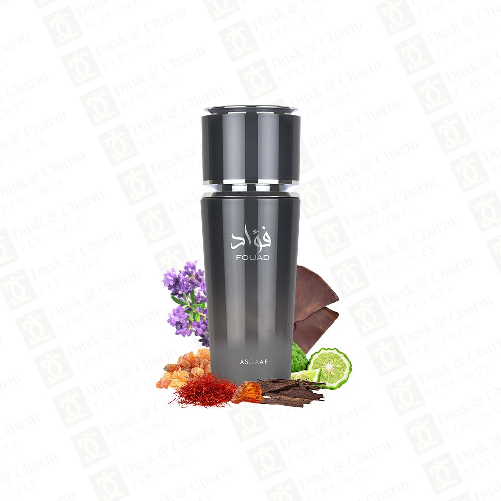 Fouad by Asdaaf is a bold and elegant oriental fragrance that opens with a refined blend of saffron, lavender, and bergamot, creating a fresh yet spicy introduction. The heart reveals a powerful mix of oud wood, Atlas cedar, and amber, adding depth and warmth. It finishes with an intense base of musk, patchouli, leather, and resins, leaving a dark, long-lasting trail that feels luxurious and masculine.