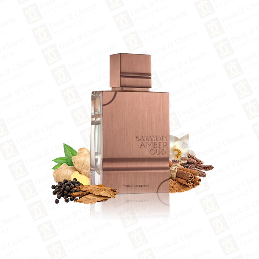 Haramain Amber Oud Tobacco Edition is a bold, warm, and addictive fragrance that opens with rich tobacco leaf spiced by cinnamon, ginger, and black pepper. The heart unfolds into a smooth blend of vanilla, tonka bean, cacao, and aromatic spices, wrapped in smoky incense. The base lingers with deep tobacco, dried fruits, and woody accords, delivering a powerful and long-lasting scent perfect for evenings and winter wear.