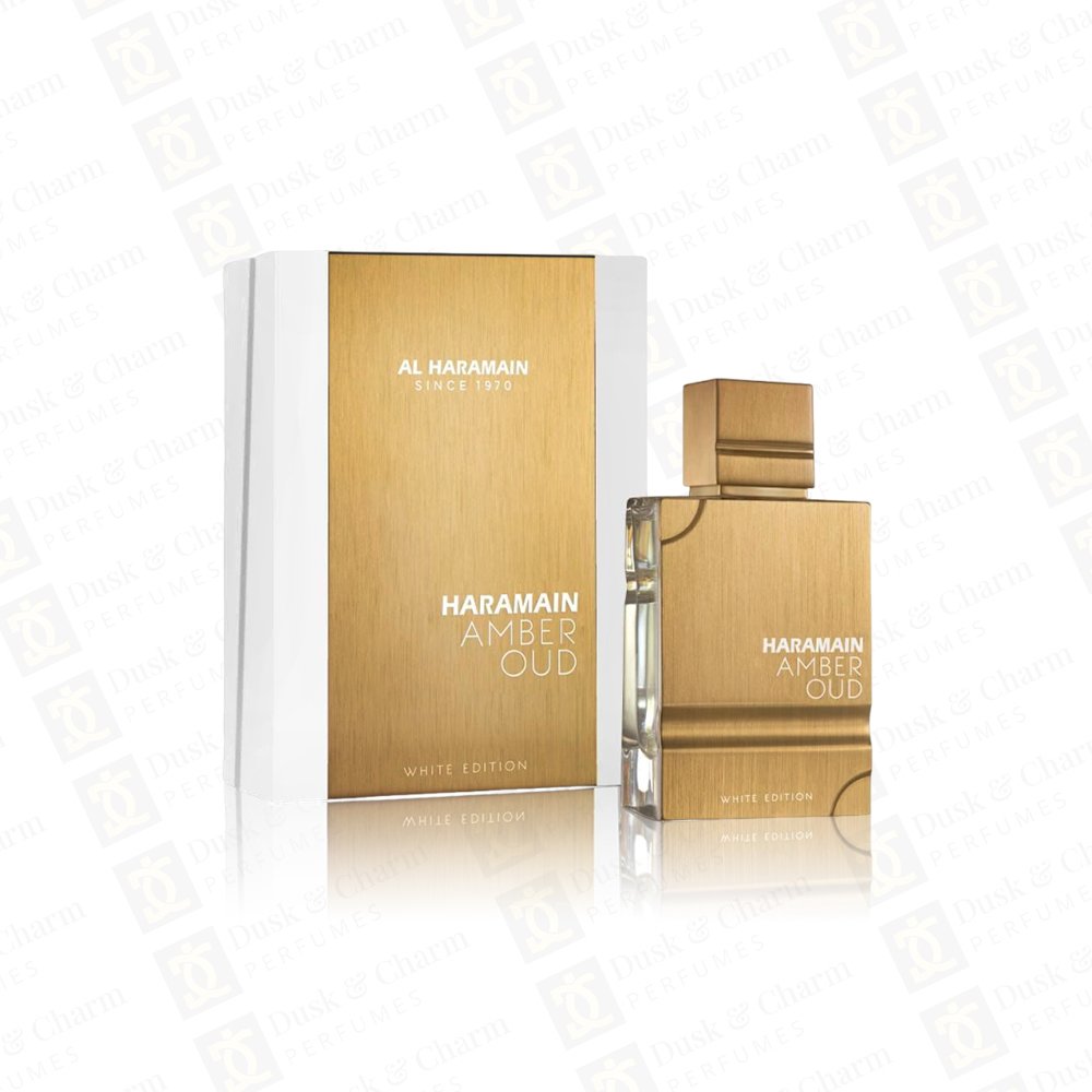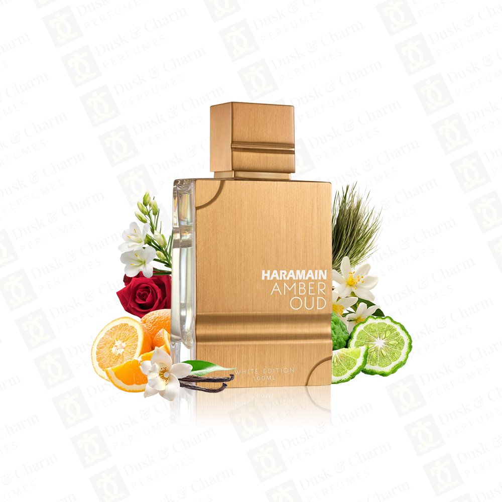 Haramain Amber Oud White Edition is a fresh and elegant fragrance that opens with bright bergamot and juicy orange. The heart reveals a soft floral blend of jasmine, rose, freesia, and cyclamen, adding a refined and airy touch. It settles into a smooth base of musk, creamy vanilla, patchouli, and vetiver, creating a long-lasting, clean, and versatile scent perfect for everyday wear.