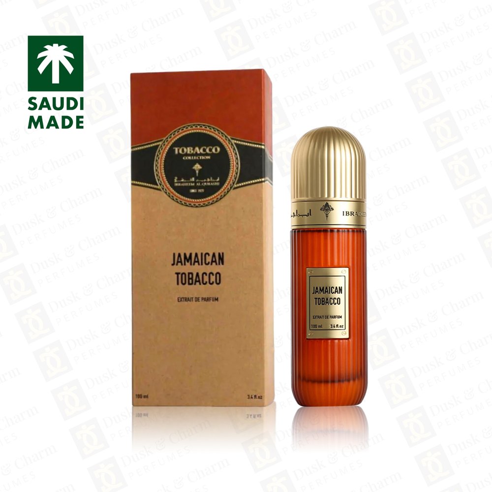 The Ibraheem Al Qurashi Jamaican Tobacco is a bold, modern unisex oriental woody fragrance known for its strong performance and a rich blend of amber, tobacco, cedar, and oud.