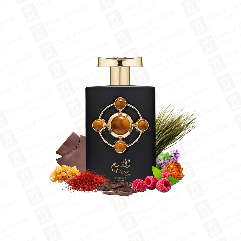 Lattafa Al Qiam Gold is a bold and luxurious fragrance that opens with the rich warmth of saffron blended with juicy raspberry for a captivating first impression. The heart reveals a deep fusion of patchouli and leather, adding an elegant and masculine edge. The base settles into a powerful blend of amber, oud, guaiac wood, vetiver, and benzoin, delivering a long-lasting, smoky-woody trail that feels premium and irresistible.