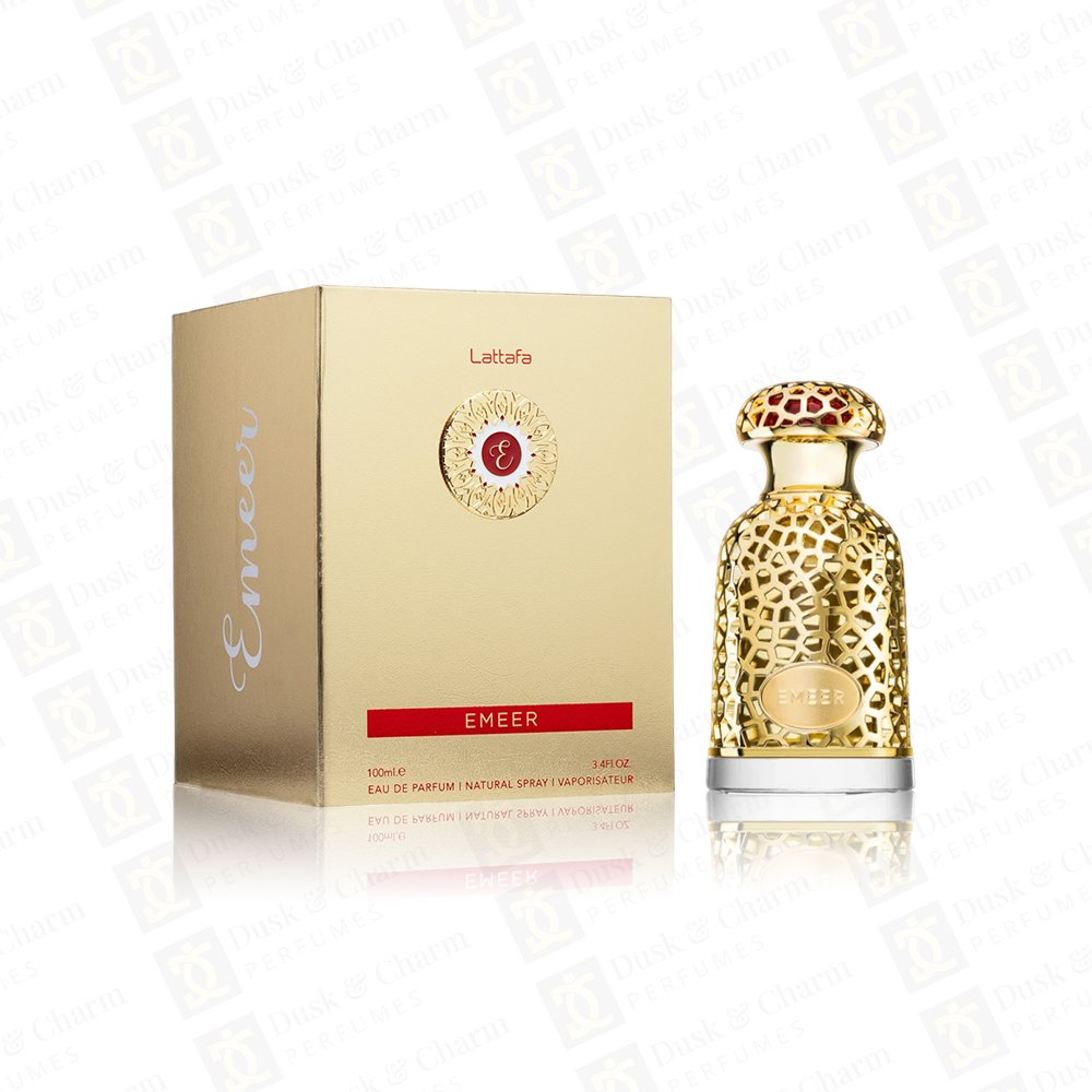 Lattafa Emeer is a refined and powerful fragrance that blends fresh citrus with aromatic spices and smooth woods. It opens with a vibrant mix of lemon and bergamot enhanced by juniper berries and clary sage, creating a crisp and energizing start. The heart unfolds with warm cardamom, calming white tea, creamy sandalwood, and resinous olibanum for a sophisticated depth. The base leaves a long-lasting trail of ambergris, cashmeran, patchouli, and cedarwood, delivering a modern, elegant, and masculine finish. Ideal for daily wear and special occasions.