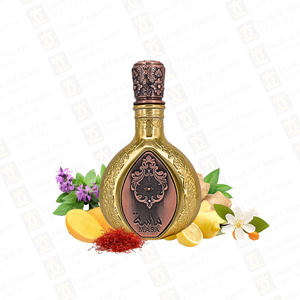 Lattafa Masa is a luxurious and modern fragrance that blends fruity freshness with warm oriental depth. It opens with a vibrant mix of saffron, lemon, pink pepper, and juicy mango, creating an energetic first impression. The heart reveals a smooth floral-spicy fusion of osmanthus, violet leaf, orange flower, and ginger, while the base settles into a rich, long-lasting trail of everlasting flower, amber mineral accord, patchouli, and suede—perfect for those who love elegant, statement-making scents.