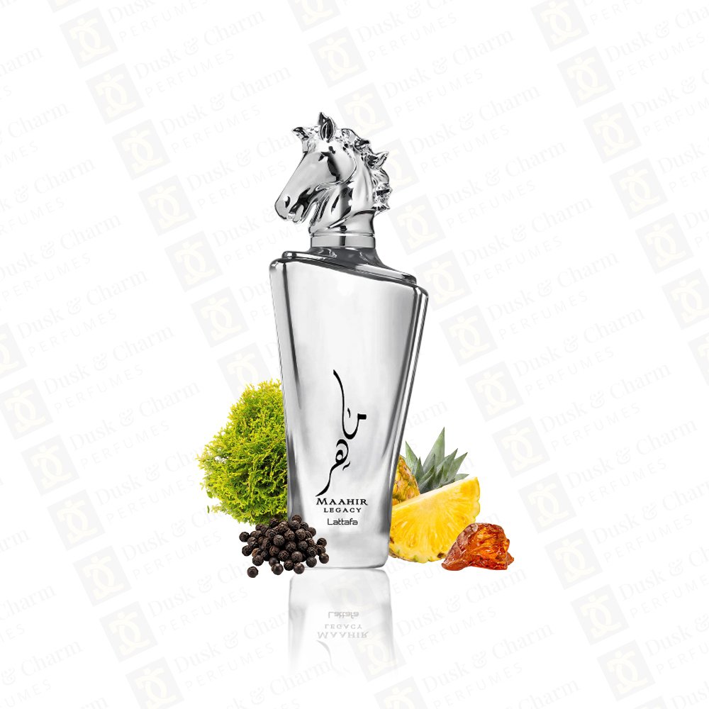 Maahir Legacy is a modern, fresh men’s fragrance that opens with a vibrant splash of citrus and mint, giving a lively and invigorating first impression. As it settles, aromatic spice and resinous woods take over, adding depth and character. In its dry-down, the scent reveals a warm, woody base with subtle earthiness and soft sweetness. It’s versatile for daily wear, especially in warmer conditions, and maintains a clean, elegant profile without being overpowering.
