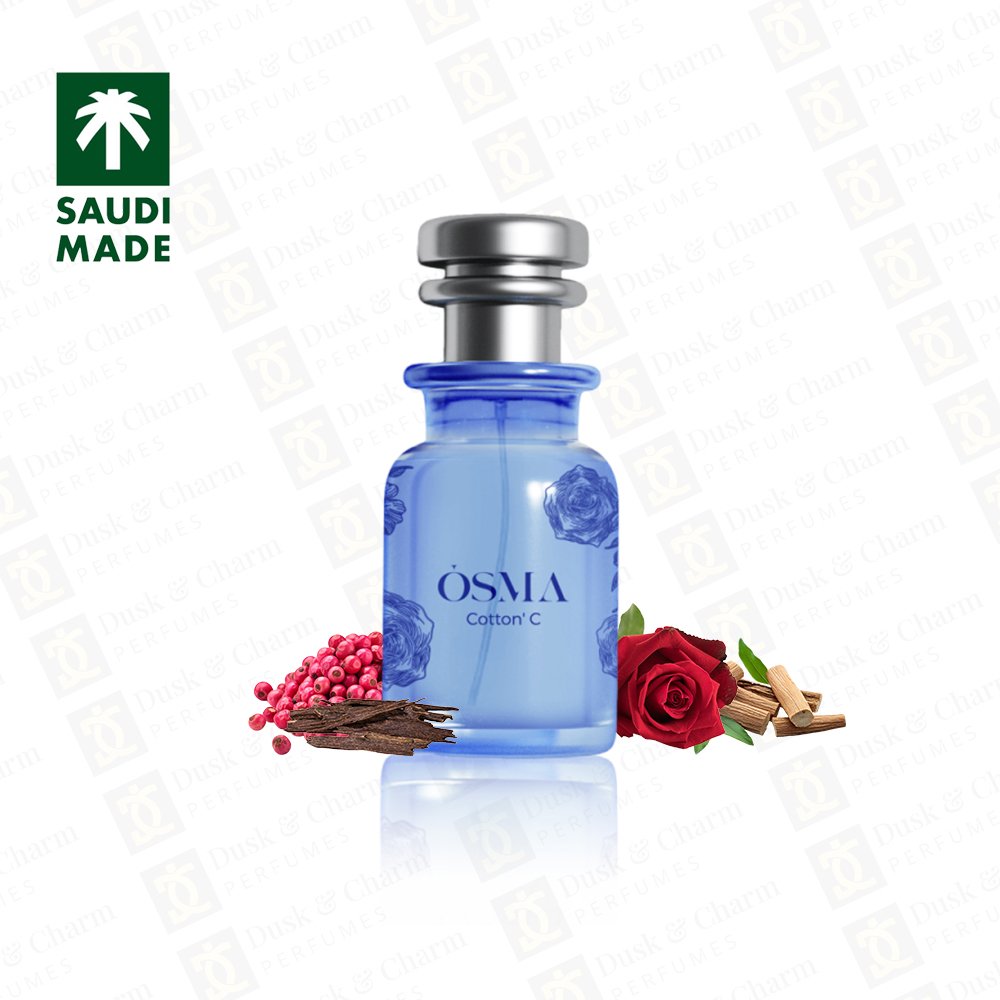 Osma Cotton C is a soft yet luxurious fragrance that blends fruity freshness with rich elegance. It opens with sweet red berries, followed by a refined heart of Turkish rose. The scent settles into a warm, deep base of oud and sandalwood, creating a smooth, long-lasting aroma perfect for everyday sophistication.