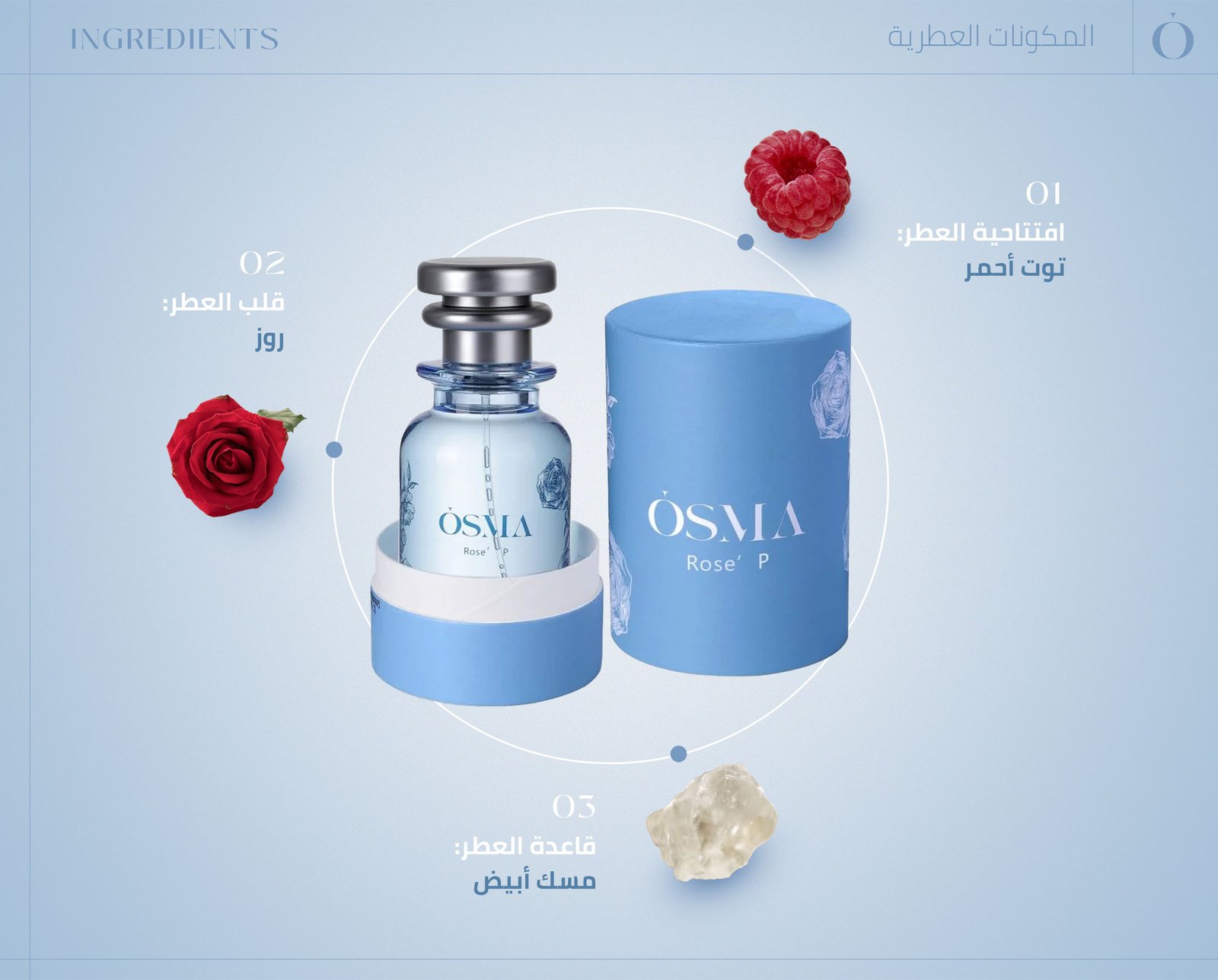 Osma Rose P is a beautifully balanced fragrance that blends fruity sweetness with timeless floral elegance. It opens with juicy red berries, giving a fresh and playful start. The heart blooms with romantic rose, adding a classic and feminine touch, while the base of white musk creates a soft, clean, and long-lasting finish.