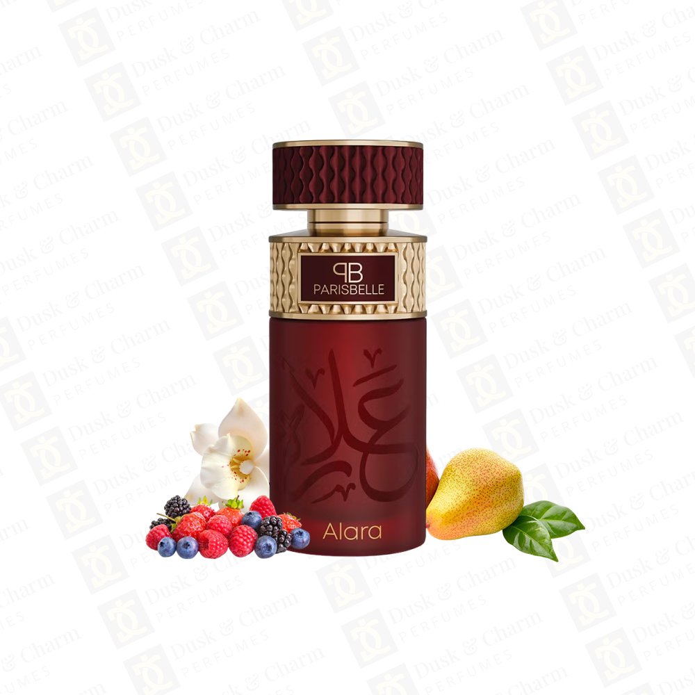 Experience the charm of Paris Belle Alara, a delightful fragrance that opens with juicy sweet pear and vibrant fruity berries, melts into a heart of indulgent gourmand vanilla, and rests on a comforting soft musk base. Perfect for adding a touch of elegance and sweetness to your everyday moments.
