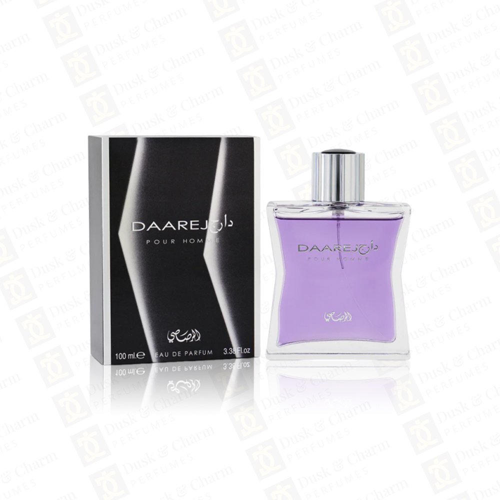 Rasasi Daarej Pour Homme is a smooth and elegant fragrance combining fresh citrus, soft florals, and warm woody musk for a timeless and long-lasting scent.