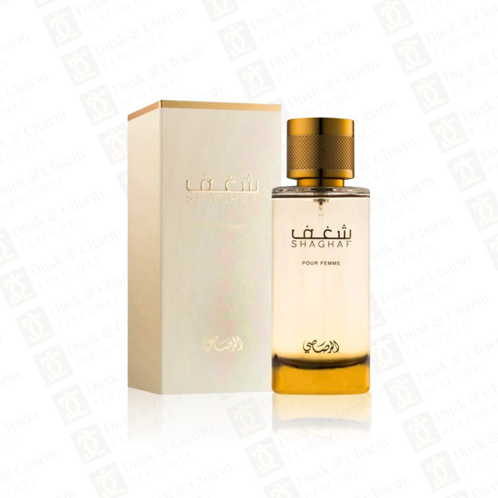 Rasasi Nafaeis Al Shaghaf Pour Femme is a luxurious oriental floral fragrance designed for elegant women. The opening blends almond, lemon, and coffee for a unique and captivating start. The heart reveals a rich floral bouquet of iris, jasmine, tuberose, and lily, while the warm base of vanilla, musk, sandalwood, and amber delivers a smooth, long-lasting finish.
