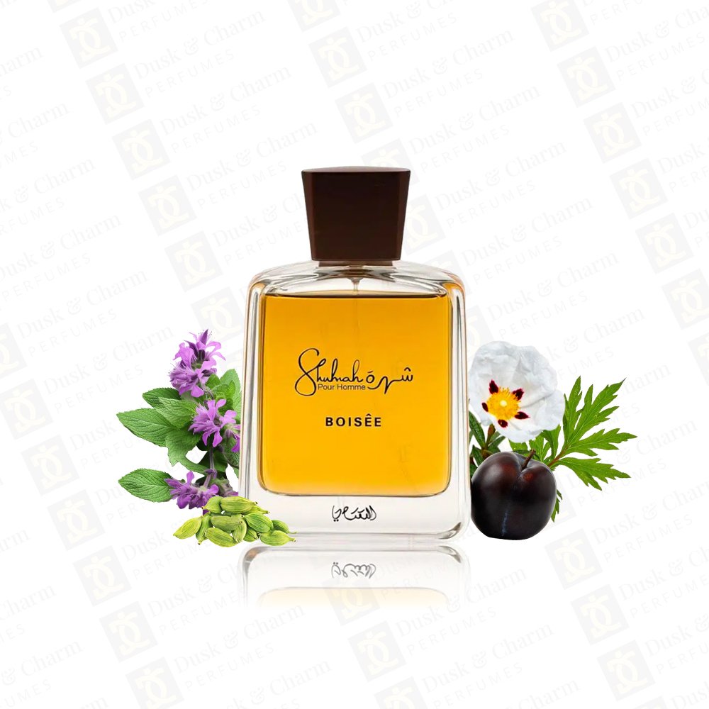 Rasasi Shuhrah Boisée is a bold and captivating fragrance crafted for lovers of rich, woody scents. It opens with the aromatic sweetness of davana, leading into a warm heart of juicy plum, spicy cinnamon, and smooth osmanthus. The base unfolds with a powerful blend of labdanum, musk, patchouli, and ambroxan, delivering a long-lasting, sensual trail. Perfect for evening wear and cooler seasons, Shuhrah Boisée reflects confidence, depth, and refined luxury.