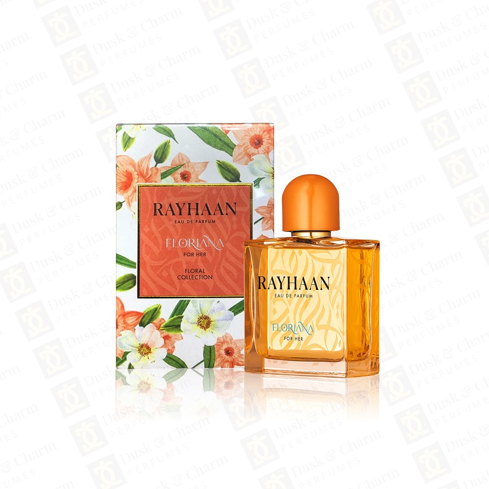 Rayhaan Floriana is a luxurious floral fragrance with citrus freshness, creamy white florals, and a warm musky-vanilla base.