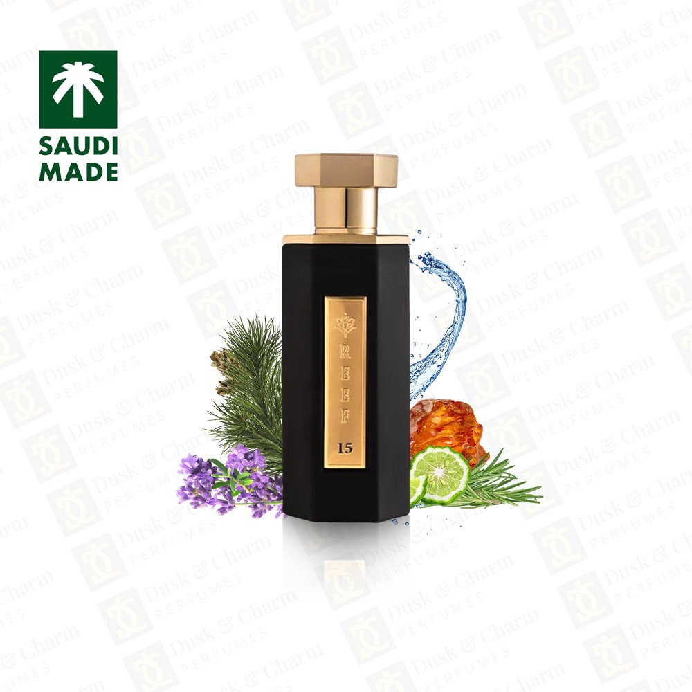 Reef 15 by Reef Perfumes opens with fresh bergamot and a cool sea breeze, leading into an aromatic heart of lavender and rosemary. The scent settles into a warm, woody base of cedarwood, amber, and musk, creating a refreshing yet elegant fragrance perfect for everyday wear.