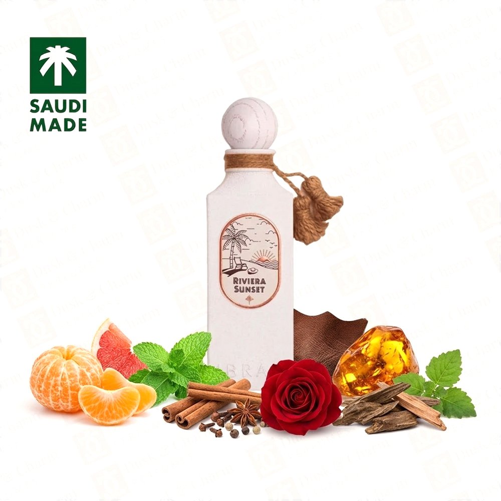 Rivera Sunset by Ibrahim Al Qurashi is a captivating fragrance that paints the warmth of a golden coastline in every spray. It opens with a zesty, refreshing burst of mandarin, grapefruit, and mint β€” bright and invigorating like the last rays of sun. The heart blooms with cinnamon, exotic spices, and rose, adding a romantic, spiced elegance. As dusk falls, the scent deepens into a rich, sensual base of leather, amber, woods, and patchouli β€” bold, mysterious, and unforgettable.